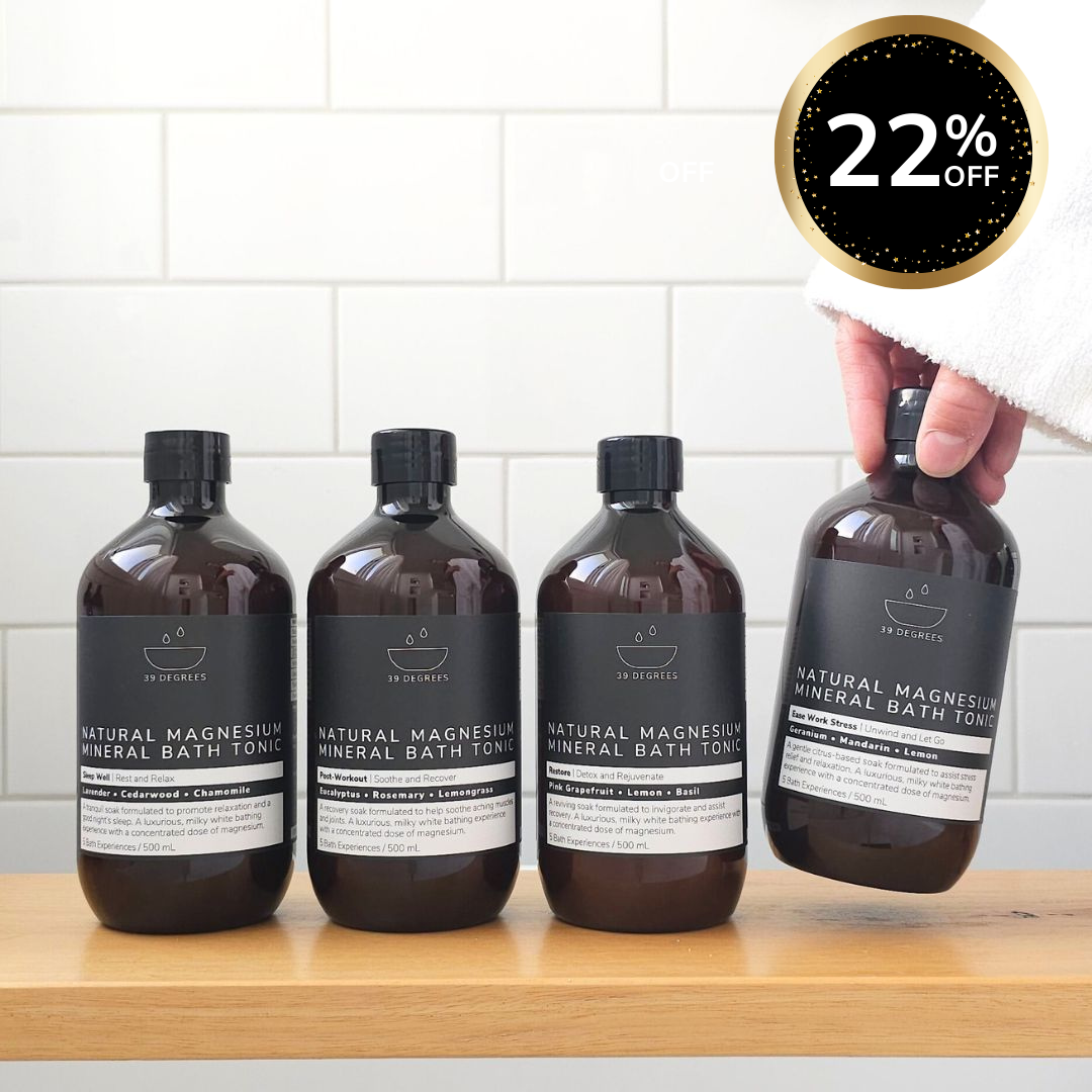 Love to soak? This is for you. Select four 500mL Bath Tonics and craft your perfect self-care ritual. Whether you need deep relaxation, clarity or a moment to reset - this is your escape, your way.