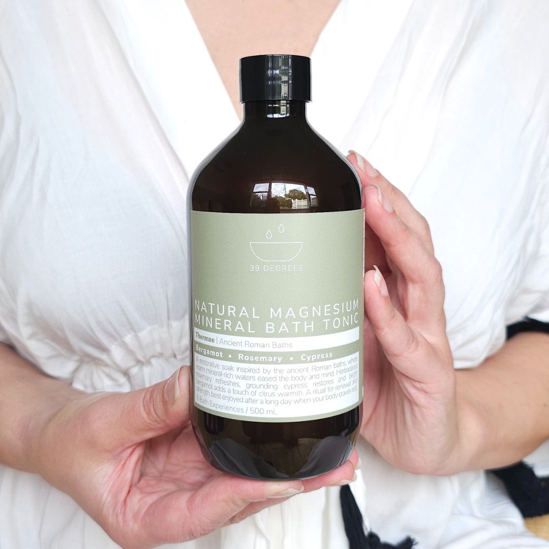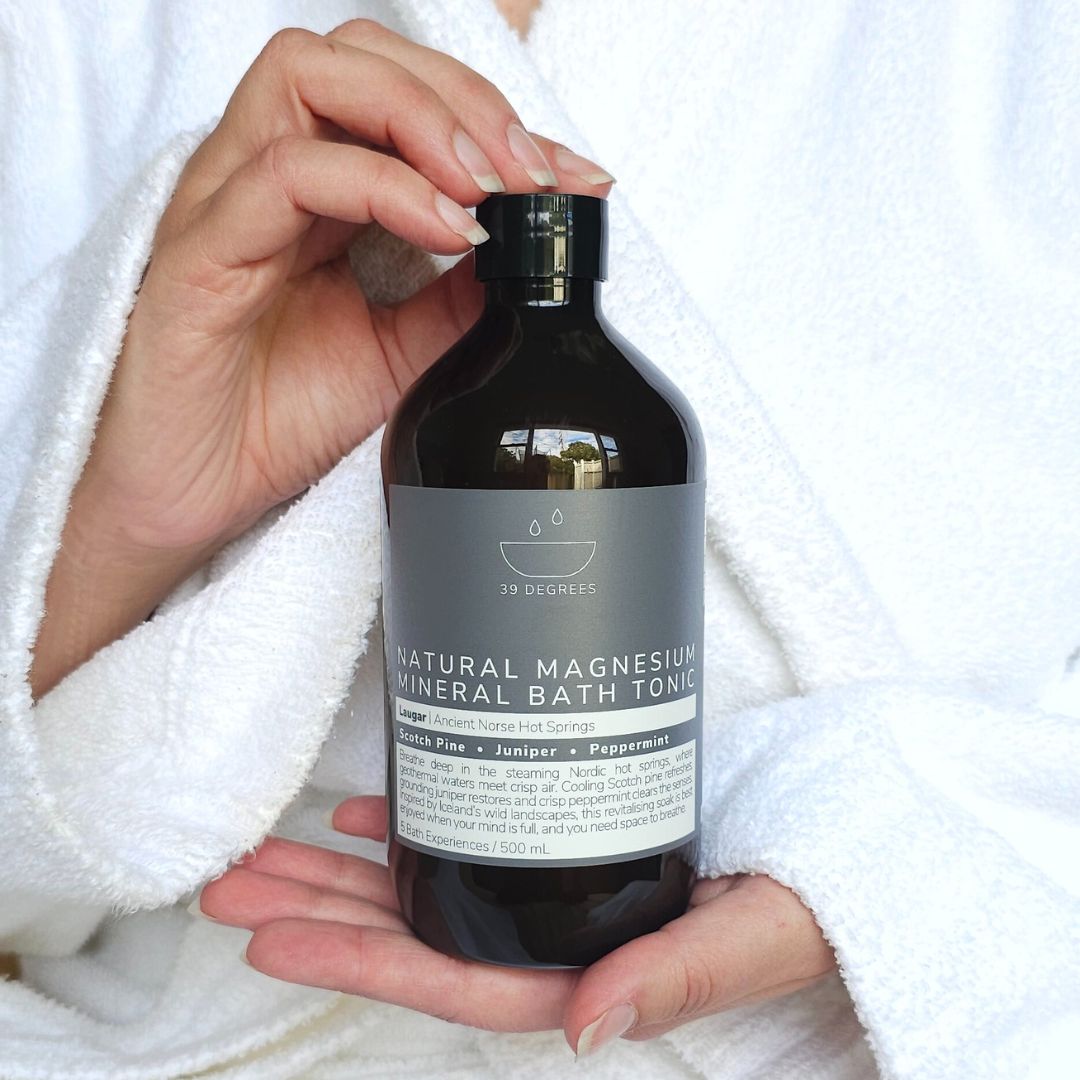 Pour. Soak. Breathe. Add 100mL to warm water. Let the minerals do the rest.