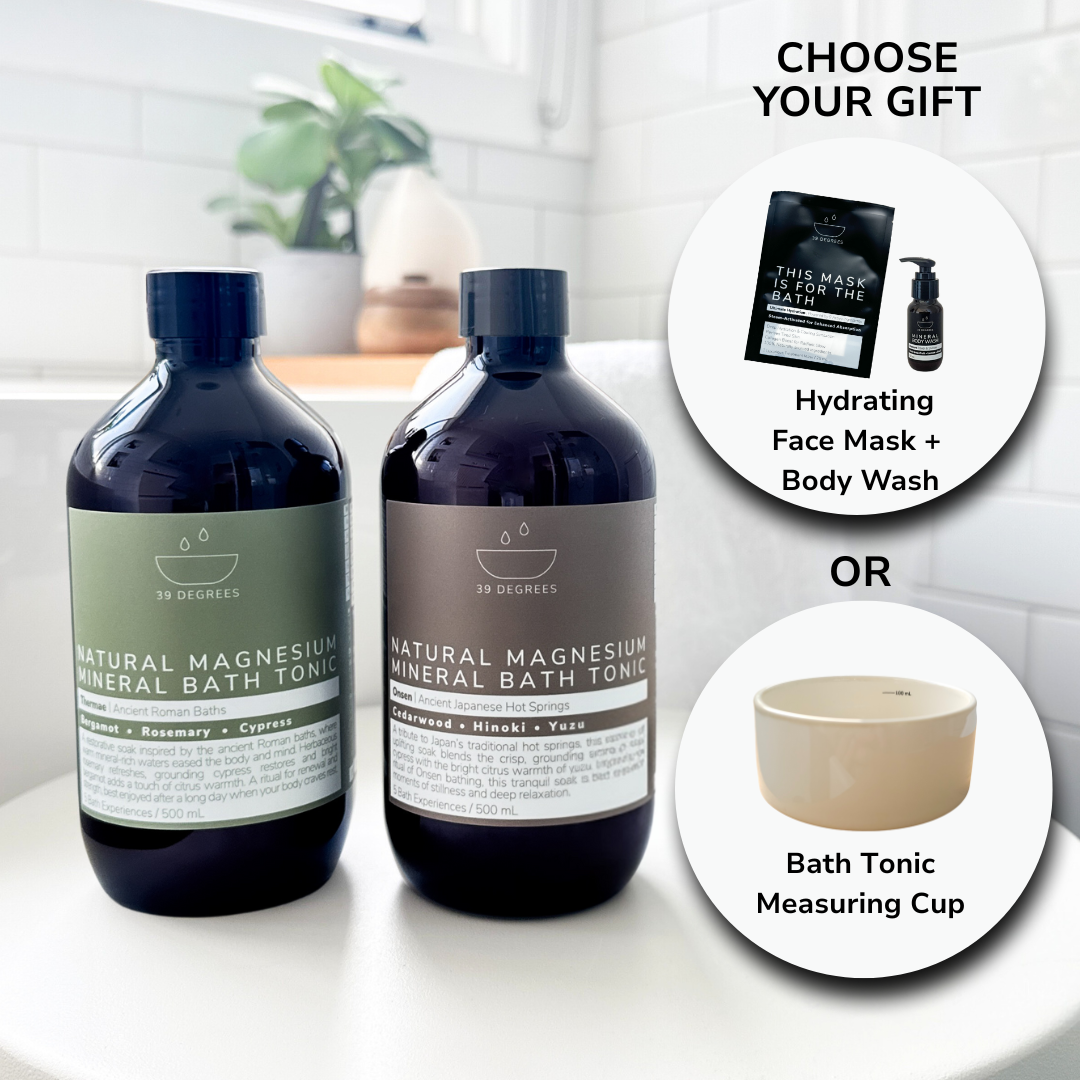 - Bonus Gift. Choose either a Hydrating, steam activated sheet masks + 50ml Body Wash OR 100 mL Bath Tonic Measuring Cup