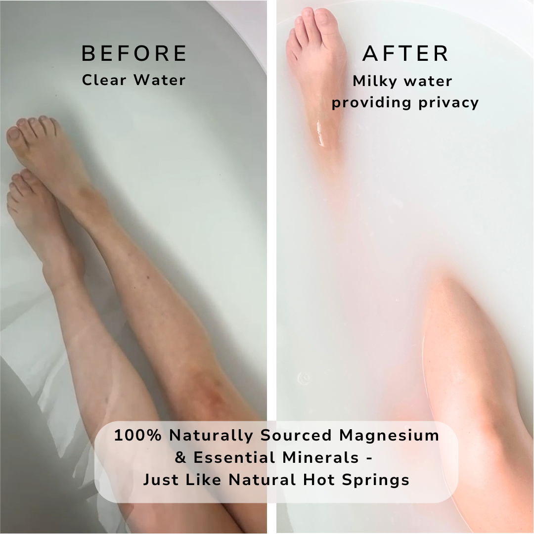 Pour. Soak. Breathe. Add 100mL to warm water. Let the minerals do the rest.