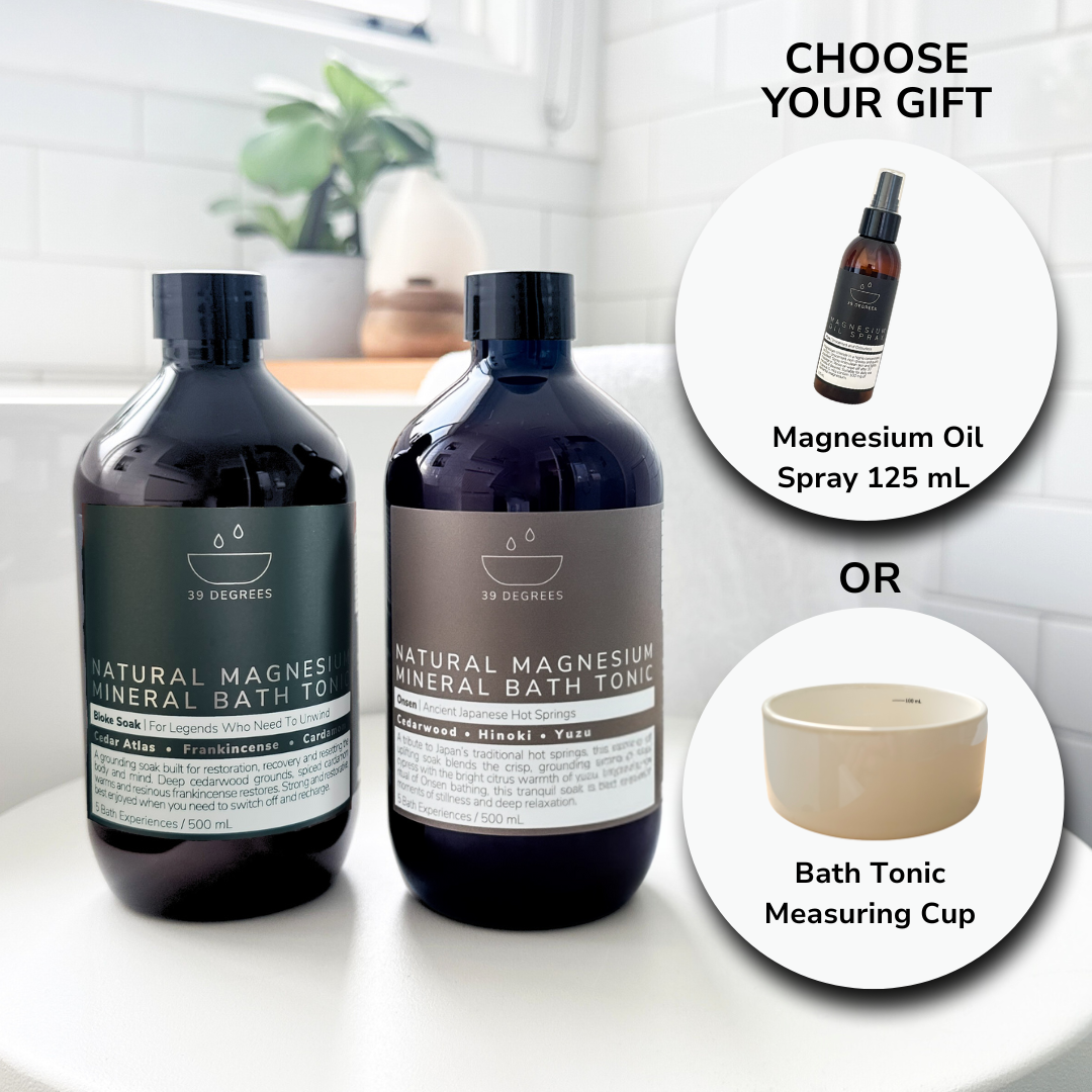 - Bonus Gift. Choose either a 125 mL Magnesium Oil Spray OR a 100 mL Bath Tonic Measuring Cup