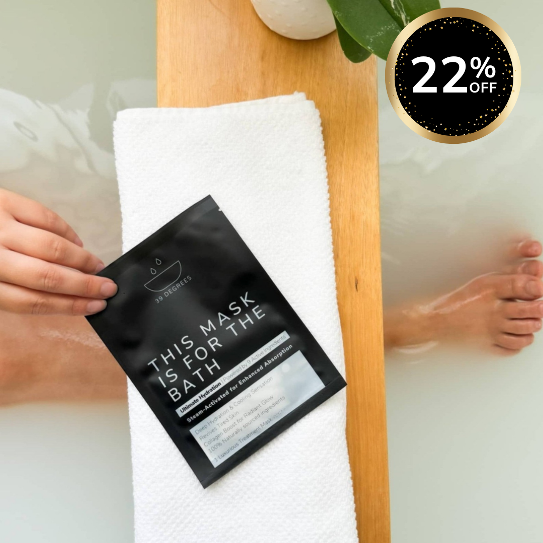 Activated by steam, This Mask Is for the Bath delivers intense hydration and a refreshing cool that revives tired skin. Made with 100% naturally sourced ingredients, this mask is infused with 9 potent actives, including hyaluronic acid for deep moisture and magnesium chloride to revitalise, revealing a natural, radiant glow.